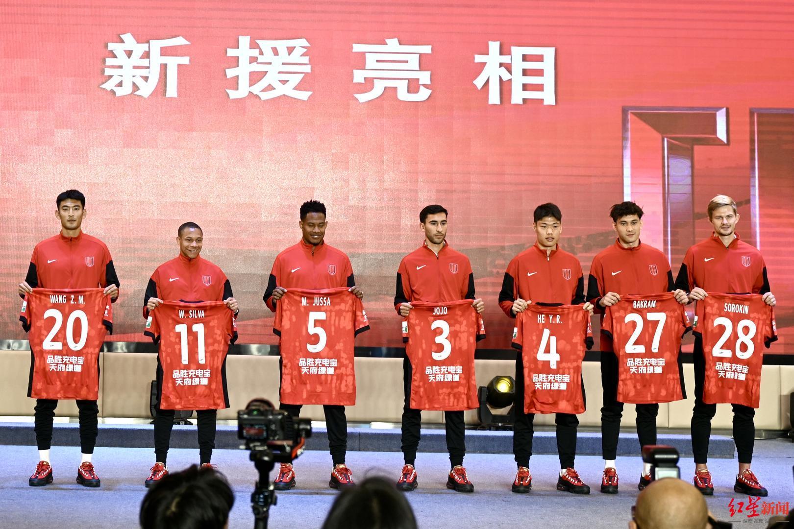 新赛季,成都蓉城变化较大,完成了主教练的更换,阿洛伊西及其教练团队进入球队。此外,球队对阵容进行了调整,在一批旧将离队的同时,引进了茹萨、韦林顿·席尔瓦、索罗金、王子铭、亚历斯祖、拜合拉木、贺一然等新援。他们也在今天的出征仪式上集体亮相,并接受了俱乐部授予的新赛季球衣。